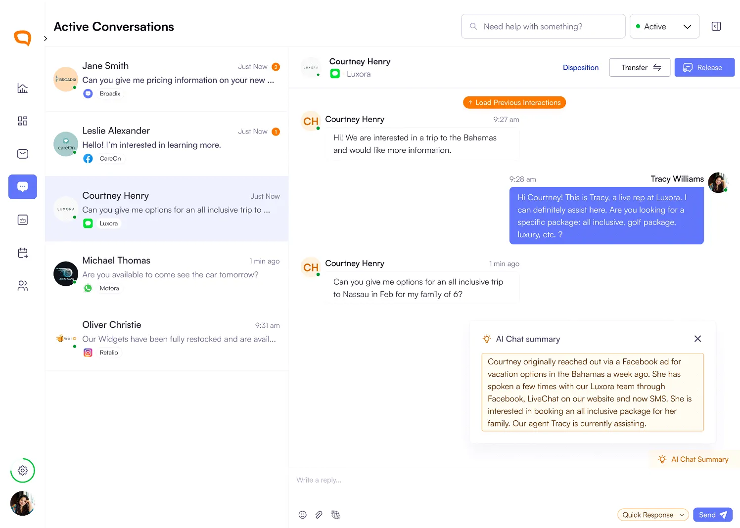 Manage dozens of conversations across multiple clients and channels from one dashboard